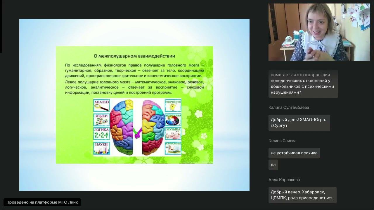 Развитие межполушарных связей как способ формирования познавательной сферы, интеллекта Дата проведения: 27.04.2024 Время: 14:00 МСК Вебинар ведет Екатерина Венгер: педагог- психолог социально реабилитационного центра для несовершеннолетних, преподаватель психологии СмолГУ, стаж работы 20 лет. В настоящее время учеными доказано, что в основе успешного развития любого психического процесса, познавательной, творческой деятельности лежит сформированность межполушарных связей головного мозга. Недостаточный уровень межполушарного взаимодействия может стать причиной отставания в развитии, нарушения когнитивных функций, причиной школьной неуспеваемости и др. При несформированности межполушарного взаимодействия не происходит полноценного обмена информацией между правым и левым полушарием. Каждое из которых постигает внешний мир по-своему. На вебинаре мы поговорим о том, что такое межполушарное взаимодействие, как работа по его развитию влияет на познавательную сферу детей. Разберем основные упражнения которые интересным и быстрым способом помогут развить у детей когнитивную сферу. Наш портал «Педагоги России» — бесплатные вебинары: http://veb.pedrus.ru/ Приобрести сертификат можно тут: https://veb.pedrus.ru/zayavka/?id=1626