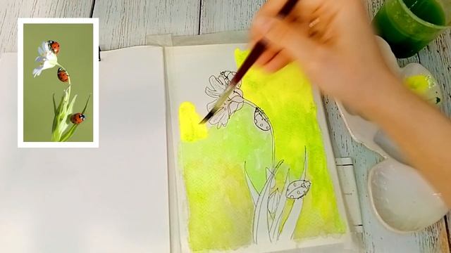 Божьи коровки. Акварельный скетч. Бесплатный урок рисования. Рисуем акварелью.