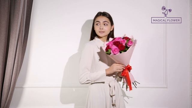 11 разноцветных роз 50 см