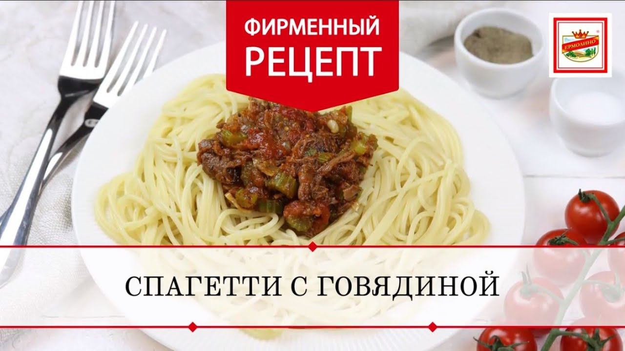 Спагетти с говяжьей тушенкой ТМ «ЕРМОЛИНО». Рецепт.