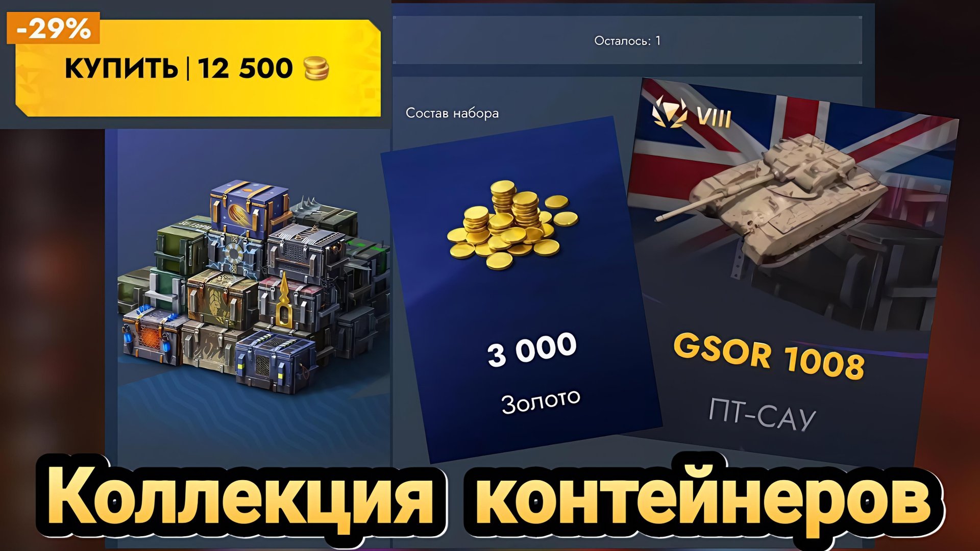 #GLADI #RUDIS #GLADIATORS #tanksblitz Let's play ▶️ Открытие набора "Коллекция контейнеров" за 12500 золота (скидка 29%), в котором 18 контейнеров. Коллекция контейнеров: 1. Контейнер Carro 45 t 2. Контейнер Chimera 3. Контейнер VK 90.01 (P) 4. Контейнер EMIL 1951 5. Контейнер GSOR 1008 6. Контейнер Strv 81 7. Контейнер AltProto AMX 30 8. Контейнер B-C Bourrasque 9. Контейнер Bisonte C45 10. Контейнер Bofors Tornvagn 11. Контейнер Caliban 12. Контейнер Char Futur 4 13. Контейнер Charlemagne 14. Контейнер СУ-130 ПМ 15. Контейнер Cobra 16. Контейнер Kampfpanzer 50 t 17. Контейнер Kampfpanzer 07 RH 18. Контейнер Объект 752 Приятного просмотра 🤝