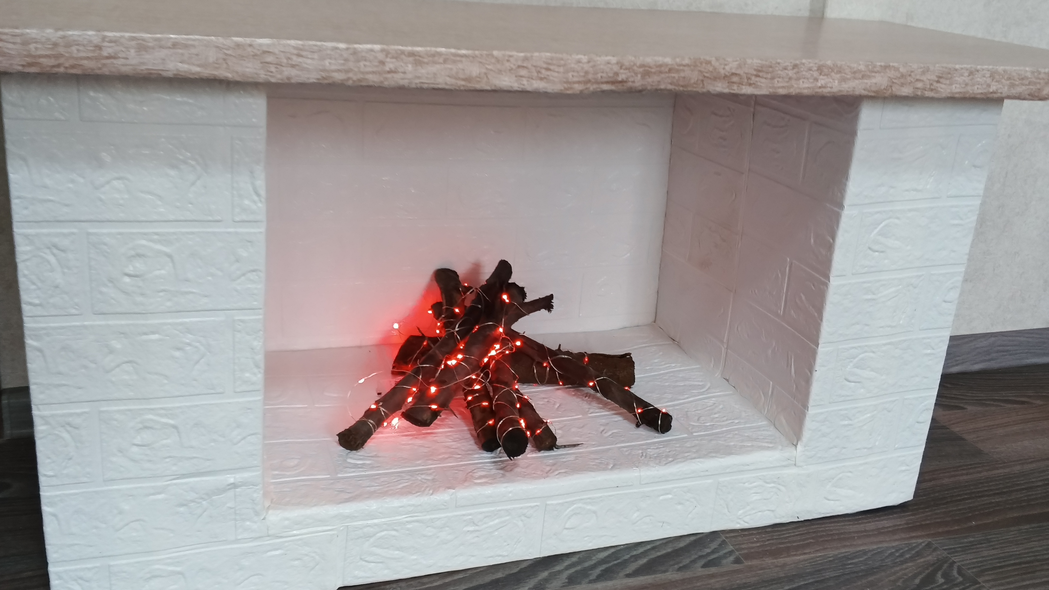 Привет! 🎄✨ Недавно мы с мужем решили создать уютную атмосферу дома и сделали декоративный камин из обычных картонных коробок. Это был отличный способ добавить немного волшебства в нашу гостиную! 📦 Мы использовали несколько больших коробок, склеили их между собой и обклеили самоклейкой под кирпич. Получилось очень реалистично! Затем подобрали красивую деревянную столешницу, чтобы завершить образ. 🔥 Для создания эффекта огня мы взяли небольшие палочки и обмотали их светодиодной гирляндой. Теперь у нас есть свой мини-камин, который создаёт ощущение тепла и уюта даже без настоящего пламени. Этот проект оказался простым и доступным, а результат превзошёл все ожидания! Если вы тоже хотите добавить немного новогоднего настроения в ваш дом, попробуйте сделать такой камин самостоятельно. Уверены, вам понравится процесс и результат! 😊