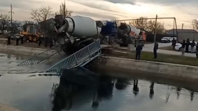 Мост в Дагестане не выдержал веса бетономешалки, которая пыталась по нему проехать, и рухнул