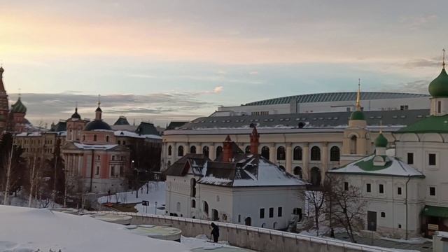 Москва. 26 февраля 2024 г. Виды со смотровой площадки в парке "Зарядье" перед закатом.