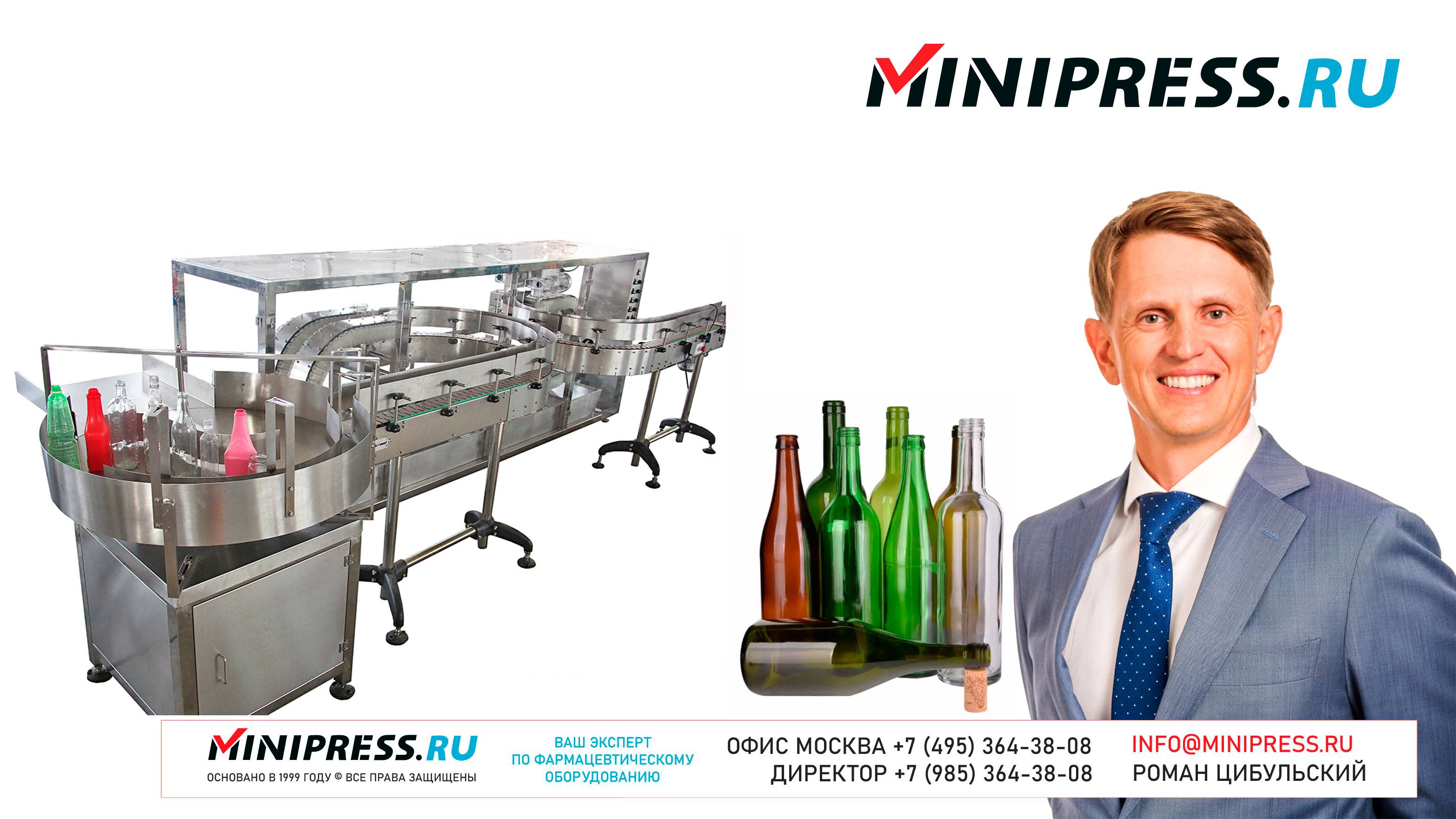 Машина мойки бутылок и банок SPX-01 https://Minipress.ru/katalog/ Фармацевтическое оборудование. Специалисты в фармацевтическом оборудовании и технологиях производства лекарств. Более 20 лет оказываем нашим клиентам помощь в выборе, поставке, наладке различного фармацевтического оборудования! Вы в поиске надежного поставщика оборудования? Мы предоставим вам лучший сервис 24/7. Собрана лучшая команда профессионалов в фармацевтической отрасли и налажены стабильные связи с лучшими производителями. Мы не только продаем, но и производим многие модели оборудования Директор компании Минипресс Роман Цибульский Поставка фармацевтического оборудования в Россию Пишите: info@minipress.ru Телефон +7(495)364-38-08; Мобильный +375(29)308-00-00 Россия, Москва Skype: RomanTsibulsky; ICQ: 310-134-490 Подписывайтесь на наш видео канал на Youtube https://youtube.com/user/wwwMinipressru Обновленный сайт https://Minipress.ru Каталог оборудования https://Minipress.ru/katalog/ МЫ В СОЦИАЛЬНЫХ СЕТЯХ G+ https://plus.google.com/+RomanTsibulsky/ FB https://facebook.com/roman.tsibulsky YOUTUBE https://youtube.com/user/wwwMinipressru IN https://ru.linkedin.com/pub/roman-tsibulsky/a6/933/661 БОЛЬШОЙ КАТАЛОГ ФАРМАЦЕВТИЧЕСКОГО ОБОРУДОВАНИЯ https://minipress.ru/katalog/ Постоянно обновляемый каталог различного фармацевтического оборудования с фотографиями, описаниями, видео и ценами. ПЕРСОНАЛЬНЫЙ МЕНЕДЖЕР 24 ЧАСА https://minipress.ru/katalog/ Вы общаетесь по всем вопросам, с момента первой консультации и до получения оборудования, с одним специалистом. СПЕЦИАЛИСТЫ И ТЕХНОЛОГИ https://minipress.ru/katalog/ Имеем обширные связи в фармацевтической среде, найдем любого специалиста, поможем с освоением оборудования и технологий. ОБСУЖДЕНИЕ ВАШИХ ИДЕЙ ПО ПРОИЗВОДСТВУ ПРОДУКЦИИ https://minipress.ru/katalog/ Поможем в оценке ваших идей. Большой опыт в организации различных производств и выпуске продукции. Ценные советы. ФАРМАЦЕВТИЧЕСКОЕ ОБОРУДОВАНИЕ Мы поставили перед собой задачу, помогать нашим клиентам в правильном выборе фармацевтического оборудования. Многолетний опыт подобной деятельности показывает, что многие клиенты сталкиваются, в первую очередь, с непониманием технологического процесса. Покупка оборудования должна быть финальной точкой после подробного обсуждения задачи, консультацией с производителем оборудования, отправкой сырья и материалов на фабрику, тестирования в работе. ДЛЯ ТАБЛЕТОК https://minipress.ru/katalog/category/farmacevticheskoe_oborudovanie/ Смешивание порошков, гранулирование, прессование, обеспыливание, покрытие оболочками, фасовка, упаковка, счет, нанесение логотипов ДЛЯ ЖЕЛАТИНОВЫХ КАПСУЛ https://minipress.ru/katalog/category/farmacevticheskoe_oborudovanie/kapsulyatory-dlya-tverdyh-zhelatinovyh-kapsul/ Фасовка порошков и масел, обеспыливание, счет и фасовка, упаковка, нанесение логотипов. ФАСОВКА И УПАКОВКА https://minipress.ru/katalog/category/upakovochnoe_oborudovanie/ Упаковка в пластиковые и стеклянные флаконы, блистер, фольгу, ламинированную бумагу, стеклянные ампулы, саше, стрипы, тубы, тюбики, контурную ячейку. ТЕХНОЛОГИЧЕСКОЕ https://minipress.ru/katalog/category/eksperimentalnoe-oborudovanie/ Лабораторное, аналитическое, подготовительное, отдельные машины и линии под ключ. СФЕРЫ ДЕЯТЕЛЬНОСТИ Наша компания занимается множеством направлений фармацевтического бизнеса! Предлагаем Вам посетить страницы нашего сайта https://www.Minipress.ru по различным специализациям. ОБОРУДОВАНИЕ ДЛЯ НАКЛЕЙКИ ЭТИКЕТОК НА БУТЫЛКИ АМПУЛЫ ФЛАКОНЫ https://minipress.ru/katalog/oborudovanie-s-otzyvami/oborudovanie-dlya-naklejki-etiketok-na-butylki-ampuly-flakony/ Автоматическое этикетировочное оборудование для этикеток на клеевой основе БЛИСТЕРНЫЕ МАШИН