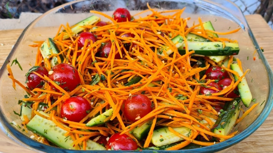 Ингредиенты: огурцы помидоры черри морковь петрушка чеснок масло оливковое перец острый дробленный