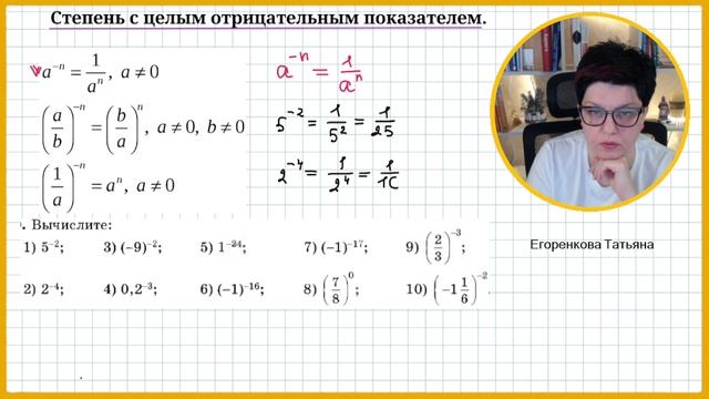Степень с отрицательным показателем 8 класс часть 1