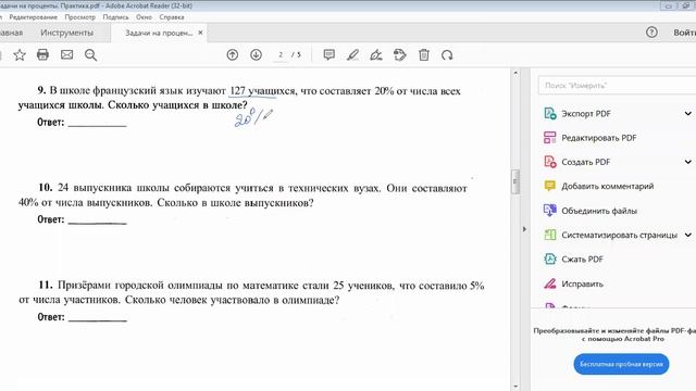 Задачи 1-15. Задачи на части и проценты. ЕГЭ база