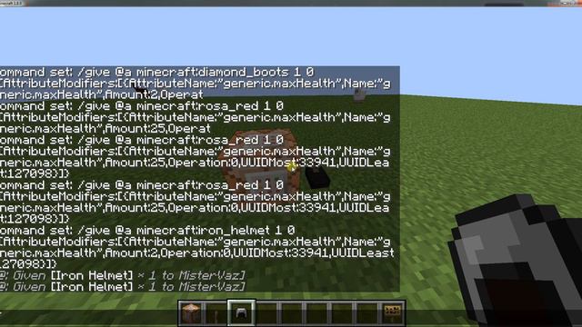 Алмазный нагрудник который добавляет 10 сердец - /give @a minecraft:diamond_chestplate 1 0 {AttributeModifiers:[{AttributeName:"generic.maxHealth",Name:"generic.maxHealth",Amount:20,Operation:0,UUIDMost:33941,UUIDLeast:127098}]} 1 = пол сердца 2 = одно сердце