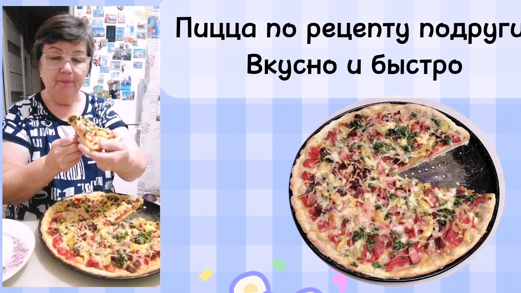 Рецепт пиццы. Быстро и вкусно. Тесто мягкое получилось и без дрожжей.