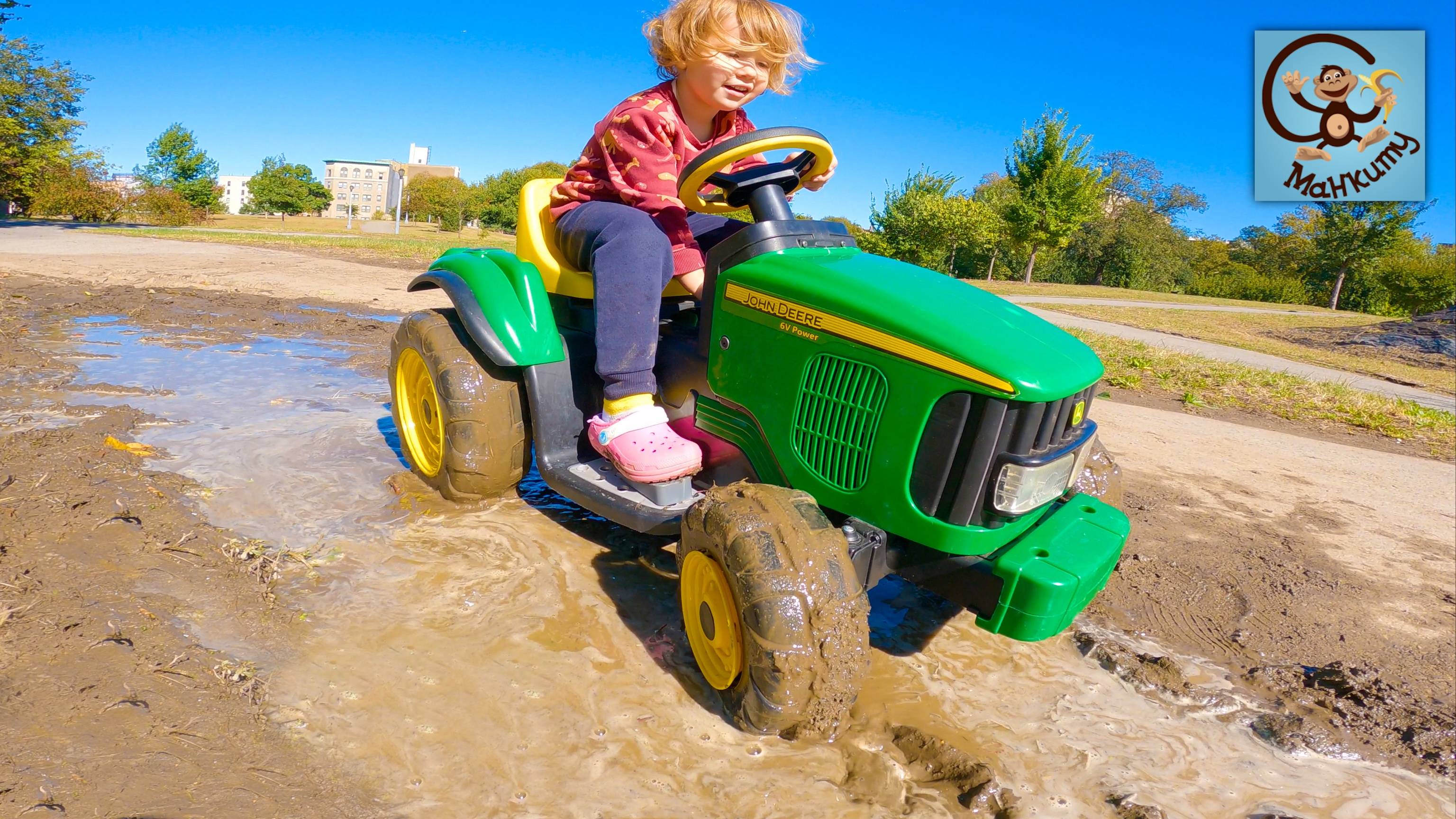 Дети и Машинки. Игрушечный и Настоящий Трактор в грязи. Манкиту