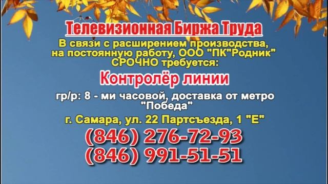 Вакансии и телефоны прямых работодателей в специализированной программе по трудоустройству "Телевизионная Биржа Труда" - г.САМАРА, г.ТОЛЬЯТТИ