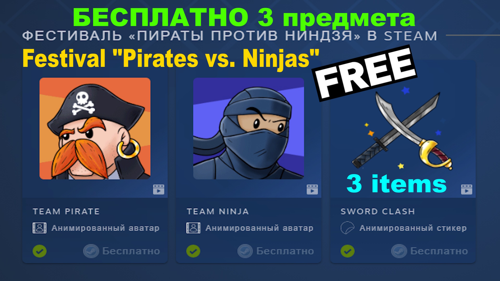 Забирайте БЕСПЛАТНО 3 предмета в Steam инвентарь✅ ФЕСТИВАЛЬ «ПИРАТЫ ПРОТИВ НИНДЗЯ»