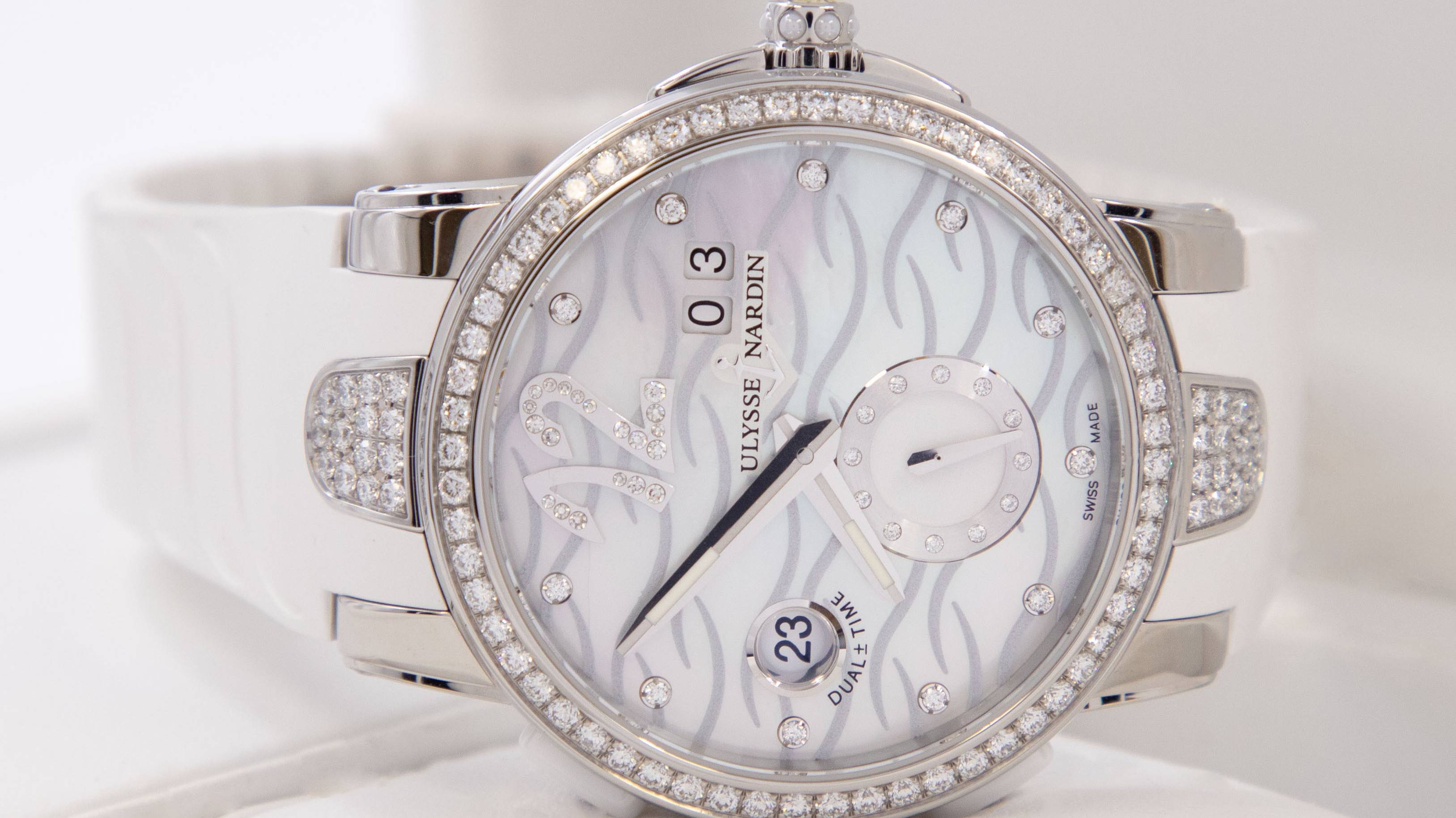 Женские часы в корпусе из нержавеющей стали, инкрустированы бриллиантами. Диаметр 40 мм. Перламутровый циферблат. https://spbluxwatches.ru/catalog/watches/un/ulysse-nardin-executive-dual-time-lady-40-mm-243-10b-3c-691/ ⌚ https://spbluxwatches.ru/ ⌚