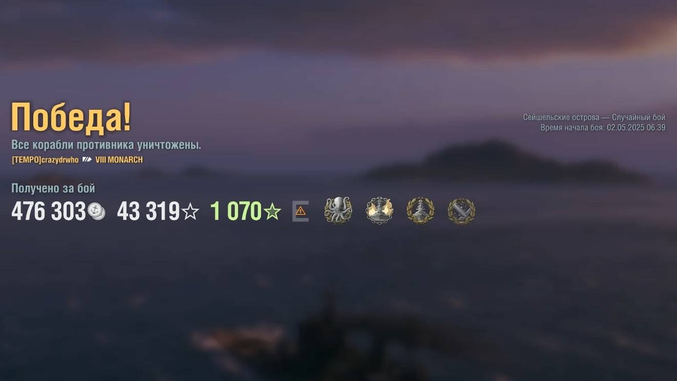 Линкор Monarch: +259к урона 5 фрагов на карте Сейшельские острова - World of Warships