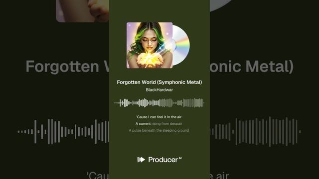 Forgotten World (Symphonic Metal) symphonic metal with cinematic orchestra: soaring female lead vocals, stacked choirs, driving double-kick drums, galloping rhythm guitars, wide distorted guitars with tight palm-mutes, epic brass swells, fast violin ostinatos, church bells and subtle wind FX in the break, massive tom fills into choruses, modern polished mix with thunderous low end and shimmering highs; ritual chant build before the solo; powerful yet uplifting, anthemic and magical, bridge section becomes mystical: sparse low strings, distant choir pads, soft bell tones and wind; whispered ritual chant leads into a huge halftime drop then accelerates back to full tempo for the solo; no trap hats, no autotune pop vocals, final chorus goes triumphant: modulated key up a whole step, layered choir ‘ahhs’, cymbal swells, sustained strings, heroic brass, big arena reverb tails, clean powerful master https://www.producer.ai/BlackHardwar https://songly.gift/ru/app/videos/create https://sinonim.org/song#res Lyrics (Verse 1) The world is grey, the skies are pale A whispered, long-forgotten tale Of ancient light and silver streams Now lives inside our faded dreams The iron towers scrape the sky We've taught our weary hearts to lie And say the magic isn't real Just silent stone and cold, hard steel (Chorus) But I can feel it in the air A current rising from despair A pulse beneath the sleeping ground A long-lost, captivating sound The echoes in the stone awake For goodness and for mercy's sake The veil of ages starts to tear A forgotten world, a silent prayer (Verse 2) They say the stars are burning gas But through a different kind of glass I see the patterns, old and deep The promises the heavens keep The wind that blows through city lanes Is humming with forgotten names Of sprites and guardians, bold and bright Who hid themselves from mortal sight (Chorus) 'Cause I can feel it in the air A current rising from despair A pulse beneath the sleeping ground A long-lost, captivating sound The echoes in the stone awake For goodness and for mercy's sake The veil of ages starts to tear A forgotten world, a silent prayer (Bridge) The time has come to break the chains To wash the world in mystic rains I'll stand upon the highest hill Where earth and sky are standing still I'll raise my hands and close my eyes And send my voice up to the skies To speak the words the world forgot And tie a new and vibrant knot... (The Spell - Заклинание) (Музыка становится тише, более таинственной и нарастающей) "By the moon and sunlit grace, Find in time your rightful place. By the root and soaring bird, Let the ancient voice be heard. From the silence, from the sleep, Secrets that the ages keep... Woven thread and burning fire, Rise to meet the world's desire! Ignis, Terra, Aer, Aqua, Bring the dawn of Magna Magia!" (Guitar Solo / Instrumental Break) (Музыка взрывается, становится мощной, эпичной и волшебной, символизируя возвращение магии. Можно услышать звуки ветра, колокольчиков, хорового пения на заднем плане.) (Chorus) And now I feel it everywhere! A current answering my prayer! A pulse that's shaking all the ground A vibrant, overwhelming sound! The echoes in the stone now speak For all the strong and all the weak! The veil of ages torn and gone, To welcome in a magic dawn! (Outro) A magic dawn... The world is born... again. The light returns... The fire burns... within. The magic's back... On the right track... At last.