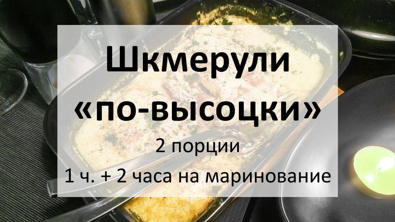 Всем привет. Как-то мы рассказывали о шикарном способе приготовления цыплёнка тапака по рецепту, якобы, Владимира Высоцкого: https://blog-food.ru/927. Вне зависимости от происхождения — это очень вкусное блюдо. Курица получается сочная, мягкая, душистая, с корочкой, в общем, всё как мы любим. Но в нашем арсенале есть ещё шкмерули или цыплёнок «по-шкмерски», который является как бы развитием стандартного рецепта цыплёнка тапака: https://blog-food.ru/186. Вот и подумалось — а не объединить ли эти два шедевра? То есть, приготовить курицу по рецепту Высоцкого, а потом залить сливками и протомить в духовке? Забегая вперёд, скажу, что результат превзошёл самые смелые наши ожидания! • Куриные бёдрышки, 3 шт. • Сливки 20%, 200 мл • Чеснок, 7-8 зубцов • Соль, 1 ч. л. • Молотый перец, 1 ч. л. • Уксус, 1 ст. л. • Растительное масло, соль Мы взяли не целую курицу, а три бёдрышка, но, естественно, всё легко масштабируется. Поскольку у нас тут плоское филе, можно ничего не отбивать. Если же у вас целая птица, то нужно как в классическом рецепте, поработать молотком. Чеснок давим или мелко рубим. Половину смешиваем с солью и перцем, натираем этой смесью курицу. Разводим уксус в 300 мл воды, заливаем маринадом курицу, оставляем в покое на пару часов. Разогреваем немного масла на сковороде, обжариваем курицу по 12 минут на среднем огне с каждой стороны под прессом. Вливаем в сковороду сливки, добавляем оставшийся чеснок, доводим до кипения, перекладываем всё в форму, накрываем фольгой или крышкой, отправляем в духовку, разогретую до 180°С, на 15-20 минут и подаём. Приятного аппетита! Текстовая версия на сайте: https://blog-food.ru/1282