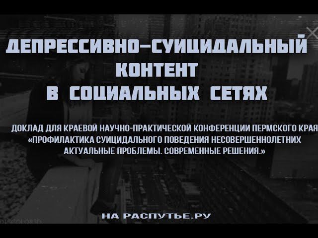 Доклад для Краевой научно-практической конференции Пермского края «Профилактика суицидального поведения несовершеннолетних Актуальные проблемы. Современные решения.» ссылка на фильм "социальные сети детство 2.0" (русские субтитры) - https://vk.com/video-151856249_456239818