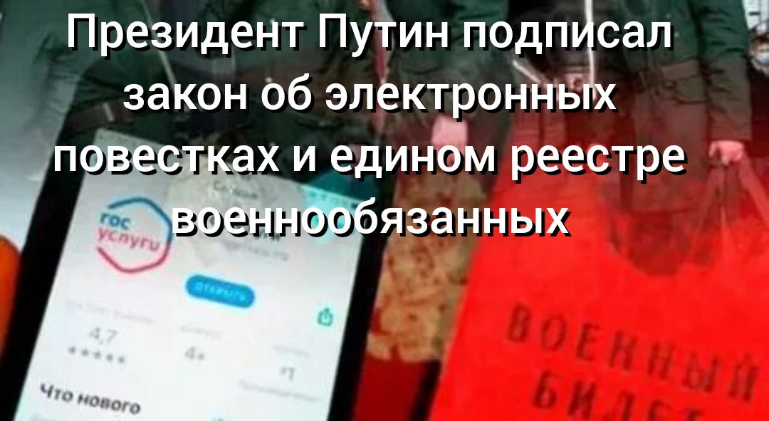 Президент Путин подписал закон об электронных повестках и едином реестре военнообязанных.