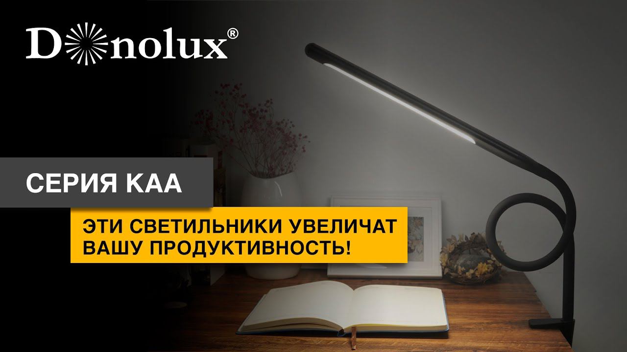 Серия KAA - это настольные светодиодные светильники бренда Donolux. В серии представлены настольные лампы с сохраняющим форму гибким штативом, и струбциной для крепления к столу. Лампа дает направленный свет с возможностью изменения яркости и цветовой температуры. Питание возможно как от сети 220В так и от USB порта компьютера или ноутбука. Настольный светильник идеален для организации местного освещения рабочего места. Корпус изготовлен из алюминия и доступен в 2-х цветах отделки: черный и белый. Гибкий штатив также изготовлен из алюминия и закрыт кожухом из синтетического каучука. Мощность светильника 15 Вт, угол рассеивания 180°, температура свечения регулируемая : 3000-6000К, индекс цветопередачи (CRI больше 90). Подробнее о серии KAA: https://donolux.ru/produktsiya/nastolnyie-napolnyie-svetilniki/lampyi-nastolnyie/kaa Наши сайты: ГЭС – https://ges.su/ Donolux – https://www.donolux.ru/ Подписывайтесь на канал и социальные сети, оставляете комментарии! Instagram (Запрещен в РФ) – https://www.instagram.com/ges_russia/ Instagram (Запрещен в РФ) – https://www.instagram.com/donolux.light/ #donolux #свет #шоурум #интерьер