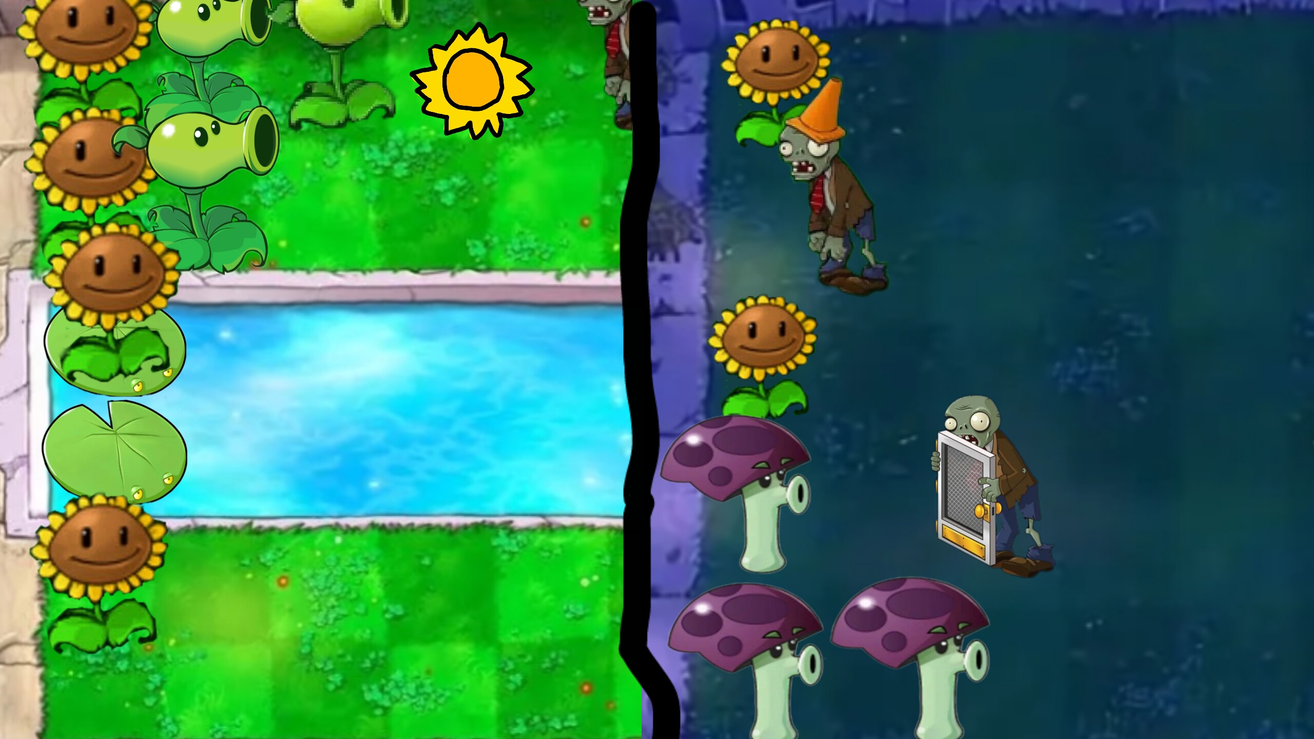 Растения 🌱 против зомби 🧟♂️. Ночь - pool. 10 - 1 волна.