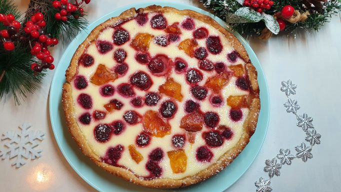Песочный пирог с ягодами в сметанной заливке. Очень очень вкусный!