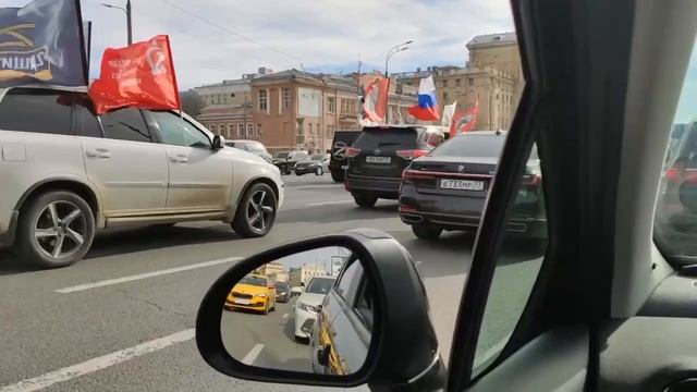 Автопробег в поддержку военных России. В Москве рядом с посольством США.