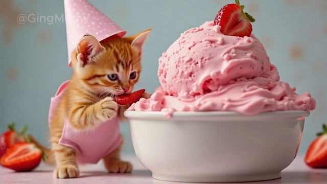 Tiny Baby Ginger Kitten’s Ice Cream Shop Adventure – The Sweetest Treat! #cat #