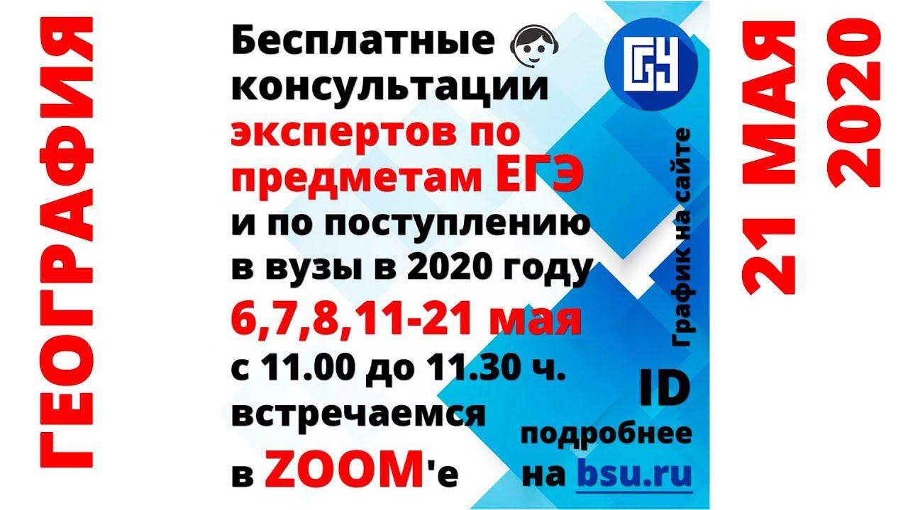 Уважаемые выпускники, их родители и классные руководители! С 6 по 21 мая пройдут бесплатные онлайн-консультации для учеников старших классов по всей России. 11 ведущих экспертов ЕГЭ проведут для вас консультации по всем общеобразовательным предметам, расскажут, как избежать ошибок и не потерять баллы. Ответственный секретарь Приемной комиссии БГУ даст подробную инструкцию, как будет проходить Приемная кампания-2020: что ждет абитуриентов, как в этом году подавать документы, какие существуют льготы, что такое конкурс, в какие даты будет проходить зачисление и многое другое. Консультации будут проходить на платформе ZOOM, присоединиться можно по ссылке https://us02web.zoom.us/j/9976663333 через ПК, планшет или телефон. Также будет вестись прямая трансляция с записью на канале "LifeBsu" в ютубе. Идентификатор конференции 997 666 3333 без пароля Начало консультаций в 11.00 согласно представленному графику. График онлайн-консультаций с экспертами по предметам ЕГЭ и по поступлению в вузы в 2020 году в новости по ссылке http://www.bsu.ru/news/22973/