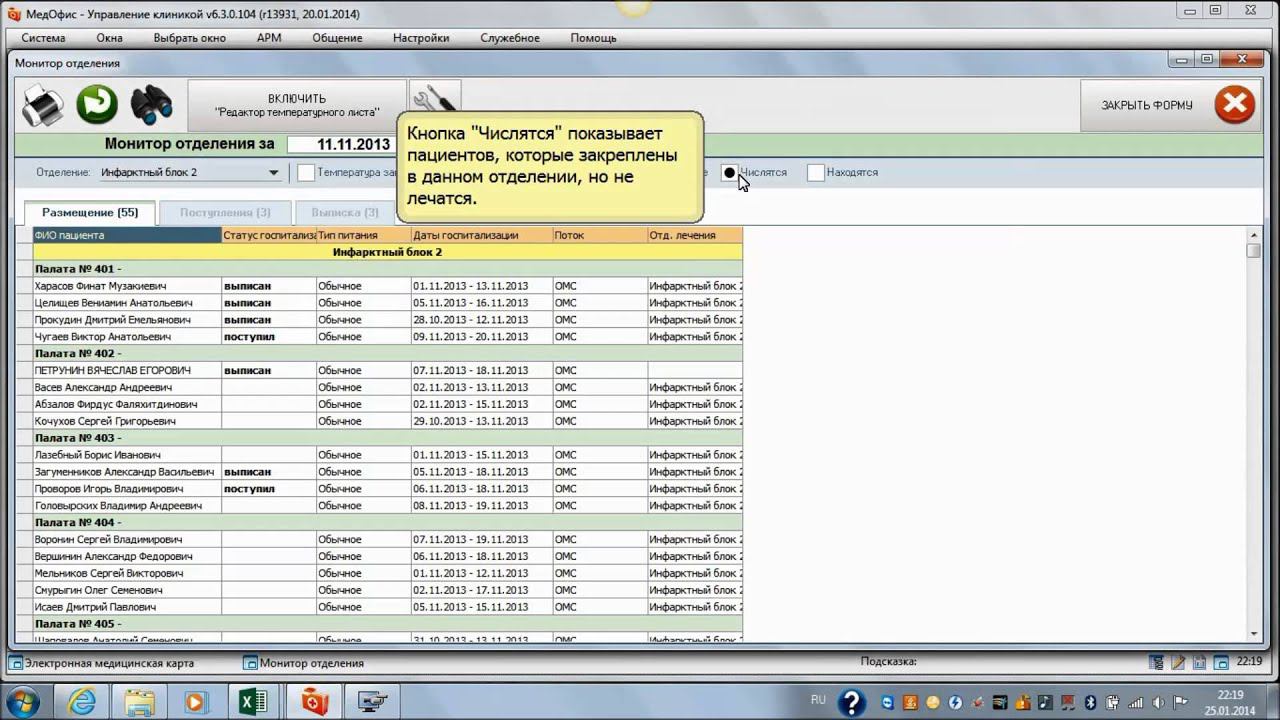 Описание интерфейса "Монитора отделения"