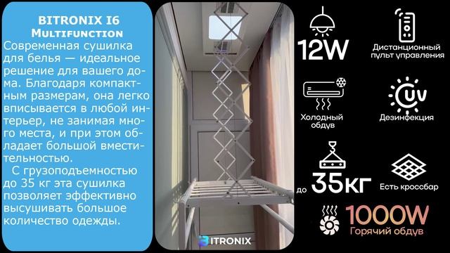 Умная потолочная электрическая сушилка для белья BITRONIX I6 Multifunction видео отзыв №23