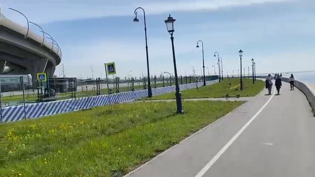 Санкт - Петербург, 29 мая 2022 Мост в Санкт-Петербурге, соединяющий южный берег Приморского района в створе Яхтенной улицы с северным берегом Крестовского острова. Самый длинный и самый высокий пешеходный мост Санкт-Петербурга. Назначение моста - обеспечение пешей доступности футбольного стадиона и других спортивных объектов на Крестовском острове.