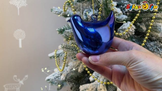 331667 Елочное украшение Птица стеклянное глянцевое синее 7см