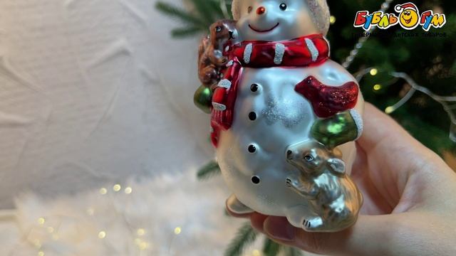 331573 Елочное украшение Снеговик с лесными друзьями стекло 11см
