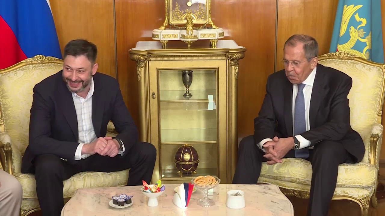 Министр иностранных дел России С.В.Лавров принял для беседы руководителя портала РИА Новости Украина К.В.Вышинского, вернувшегося в Россию в рамках обмена "35 на 35" между Москвой и Киевом 7 сентября 2019 года.