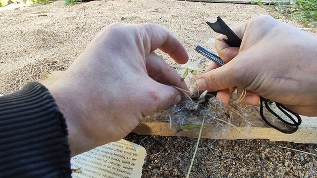 Показываю, что разжечь огонь при помощи огнива, это не простая задача. Спойлер - разжечь ;)