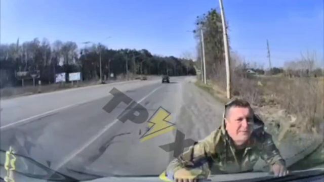 🐖 Будни Зе-мобилизации в Луцкой области. При попытке бусифицировать водителя одного людоловов самого прокатили на капоте бусика.