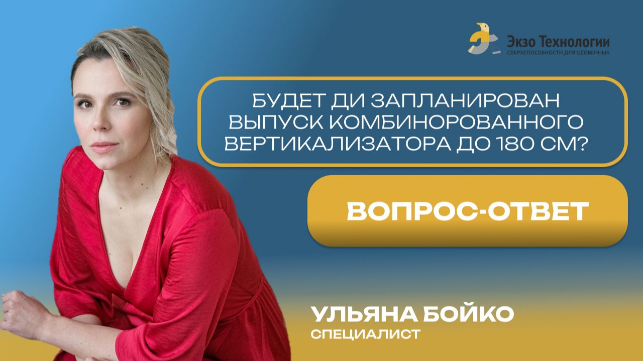 Друзья, в новой вырезке из нашего прямого эфира мы подробно отвечаем на часто задаваемый вопрос, будет ли выпущен комбинированный вертикализатор ЭкзоСтенд на 180 см. 💪 Смотрите видео, чтобы получить ценную информацию и получить ответ на вопрос! 😉 Экзо Технологии" - это помощь детям с особенностями развития! Мы разрабатываем и производим современные ТСР, которые помогают им двигаться к самостоятельной жизни. Доставляем по всей России! На нашем канале вы найдете: 1) Обзоры ТСР. 2) Советы экспертов. 3) Ответы на ваши вопросы от , врача-невролога, эксперта по ДЦП! Подписывайтесь, чтобы узнать больше о том, как помочь вашему ребенку! Запишитесь на БЕСПЛАТНУЮ примерку прямо сейчас и убедитесь в качестве и безопасности наших ТСР! ➡️ Как с нами связаться: Позвонить нам - +7 (495) 118‑25‑88 WhatsApp - +7 926 552-28-68 ВКонтакте - https://vk.com/exobot?from=groups Telegram - https://t.me/exotechnology Сайт - https://dev.exo-technology.ru/