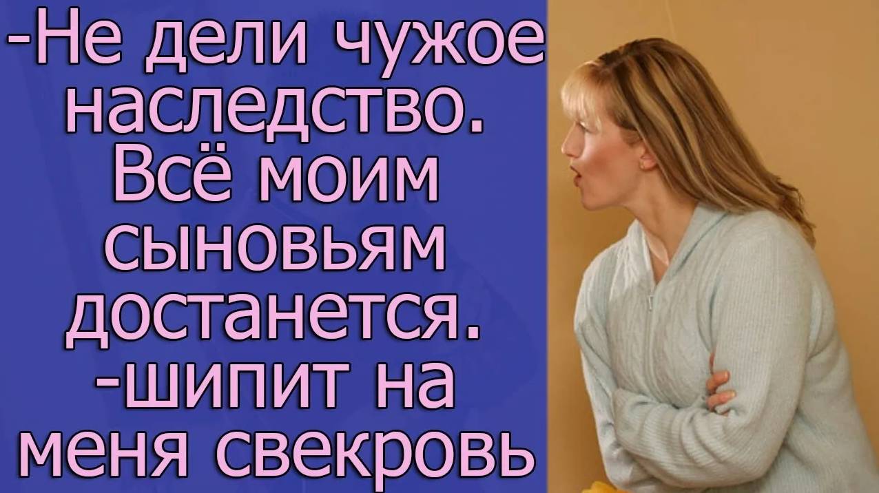 — Не дели чужое наследство. Всё моим сыновьям достанется. — шипит на меня свекровь.