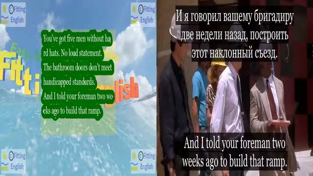 !ПЕРЕВОД ЗДЕСЬ! БЫСТРОЕ ЭФФЕКТИВНОЕ ЛЕГКОЕ ИЗУЧЕНИЕ АНГЛИЙСКОГО ЯЗЫКА ПО АНГЛИЙСКИМ ФИЛЬМАМ, В РЕЗУЛЬТАТЕ ВЫ С УДОВОЛЬСТВИЕМ БУДЕТЕ ПОЛНОСТЬЮ ПОНИМАТЬ АНЛИЙСКИЕ ФИЛЬМЫ БЕЗ СУБТИТРОВ И ПЕРЕВОДЧИКА, БЕСПЛАТНОЕ ИЗУЧЕНИЕ АНГЛИЙСКОГО ЯЗЫКА ПО ФИЛЬМУ FOOLS RUSH IN Поспешишь людей насмешишь, ГОТОВЫЙ ПЕРЕВОД ФИЛЬМА FOOLS RUSH IN Поспешишь людей насмешишь #LearnEnglish #EnglishLesson #StudyEnglish #EasyEnglish #EveryDayEnglish #FastEnglish #EnglishCourse #FoolsRushIn #FittingEnglish #FoolsRushInFittingEnglish #AllTypesThisLessonRuflrin00853PR --- СУБТИТРЫ С ПЕРЕВОДОМ текущего урока фрагмент фильм FOOLS RUSH IN You've got five men without hard hats. No load statement. У вас пять человек без касок. Не заполнена смета. The bathroom doors don't meet handicapped standards. Туалетные двери не отвечают стандартам инвалидов. And I told your foreman two weeks ago to build that ramp. И я говорил вашему бригадиру две недели назад, построить этот наклонный съезд. --- НОВЫЕ СЛОВА С ИХ ПЕРЕВОДОМ: load заполнять statement смета bathroom уборная ramp наклонная плоскость --- Если Вы хотите самостоятельно перевести этот ТЕКСТ и НОВЫЕ СЛОВА то, ДЛЯ БЫСТРОГО ПЕРЕВОДА ПРОСТО откройте ссылку, которая находится ниже и В РЕЗУЛЬТАТЕ ОТКРОЕТСЯ ОКНО GOOGLE ПЕРЕВОДЧИКА С УЖЕ ВСТАВЛЕННЫМ ТУДА АНГЛИЙСКИМ ТЕКСТОМ И ГОТОВЫМ ТЕКСТОМ ПЕРЕВОДА НА РУССКИЙ ЯЗЫК(ОКНО СПРАВА). МОЖЕТЕ НАСЛАДИТЬСЯ БЫСТРЫМ ГОТОВЫМ ПЕРЕВОДОМ. https://translate.google.com #en/ru/You've%20got%20five%20men%20without%20hard%20hats.%20No%20load%20statement.%20The%20bathroom%20doors%20don't%20meet%20handicapped%20standards.%20And%20I%20told%20your%20foreman%20two%20weeks%20ago%20to%20build%20that%20ramp.%20load%20statement%20bathroom%20ramp%20%20 --- Site: http://fittingenglish.com email: fittingenglish@gmail.com --- Если Вы захотите часто смотреть и понимать этот фильм, то для изучения языка Вы можете приобрести этот фильм на английском языке на Amazon.com или на других подобных сайтах.