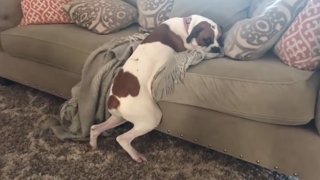 Собака по кличке Лекси наслаждается счастливой жизнью, но у неё есть одно огорчение — животному нельзя забираться на диван. #собака #прикол #диван
