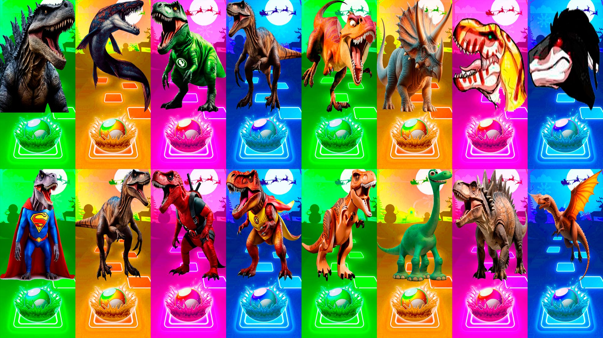 Динозавры МЕГАМИКС 321-324 уровни - Мультики про Динозавров | МУЛЬТФИЛЬМЫ ДИНОЗАВРЫ в Tiles Hop