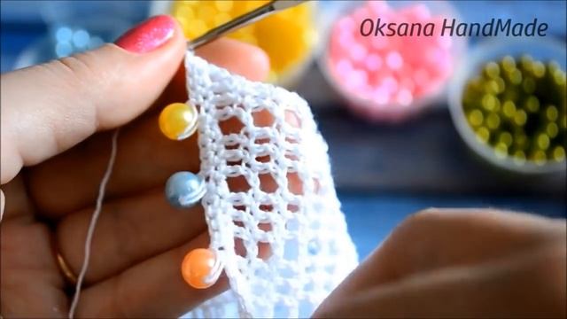 Обвязка края изделия с бусинами. Мастер класс. Вязание крючком.