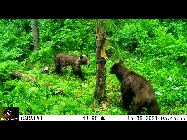 В июне мы публиковали сюжет о наступлении периода "свадеб" у бурого медведя. https://www.youtube.com/watch?v=421zrHwM8xg В конце июня пара вновь попала в поле зрения фоторегистратора, но поведение было уже другим. "Период гона у бурого медведя закончился. Взрослые самцы вне периода гона держатся поодиночке и встречи с ним избегают остальные члены семейного сообщества. Достаточно редкая видеосъемка хорошо отображает отношения внутри семейных группировок медведей, в данном случае в конце гона", - комментирует Юрий Калинкин, ведущий научный сотрудник Алтайского заповедника, к.б.н. Установка фоторегистратора - государственный инспектор С. Кульбацкая.