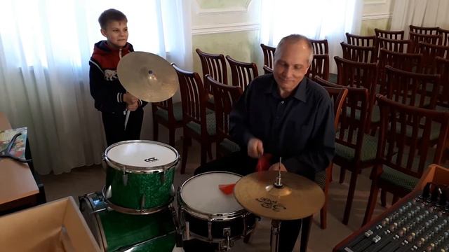 Богдан учится играть на барабанах(3)