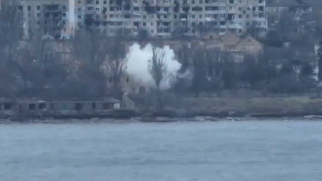 Работа из ПТРК по противоположном берегу Днепра