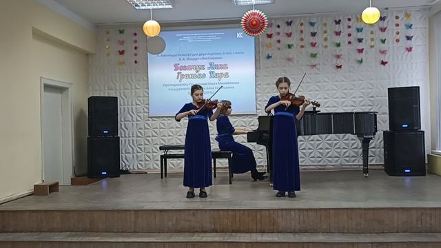 Исполняет дуэт скрипачей «Созвучие» в составе: Богачук А. 4/8 кл., 9 лет, Гринько К. 5/8 кл. 11 лет, преподаватель Грызунова О.М., концертмейстер Мень А.Е.