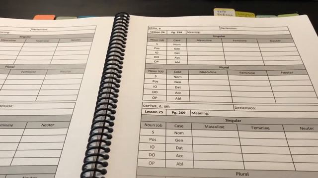 See inside the Ch 1 Fall Latin Workbook. It is intended to be used with the Henle First Year Latin text. This workbook is filled with all the charts you will need to learn the vocabulary and decline / conjugate the nouns, adjectives, and verbs for the first semester of Challenge 1.