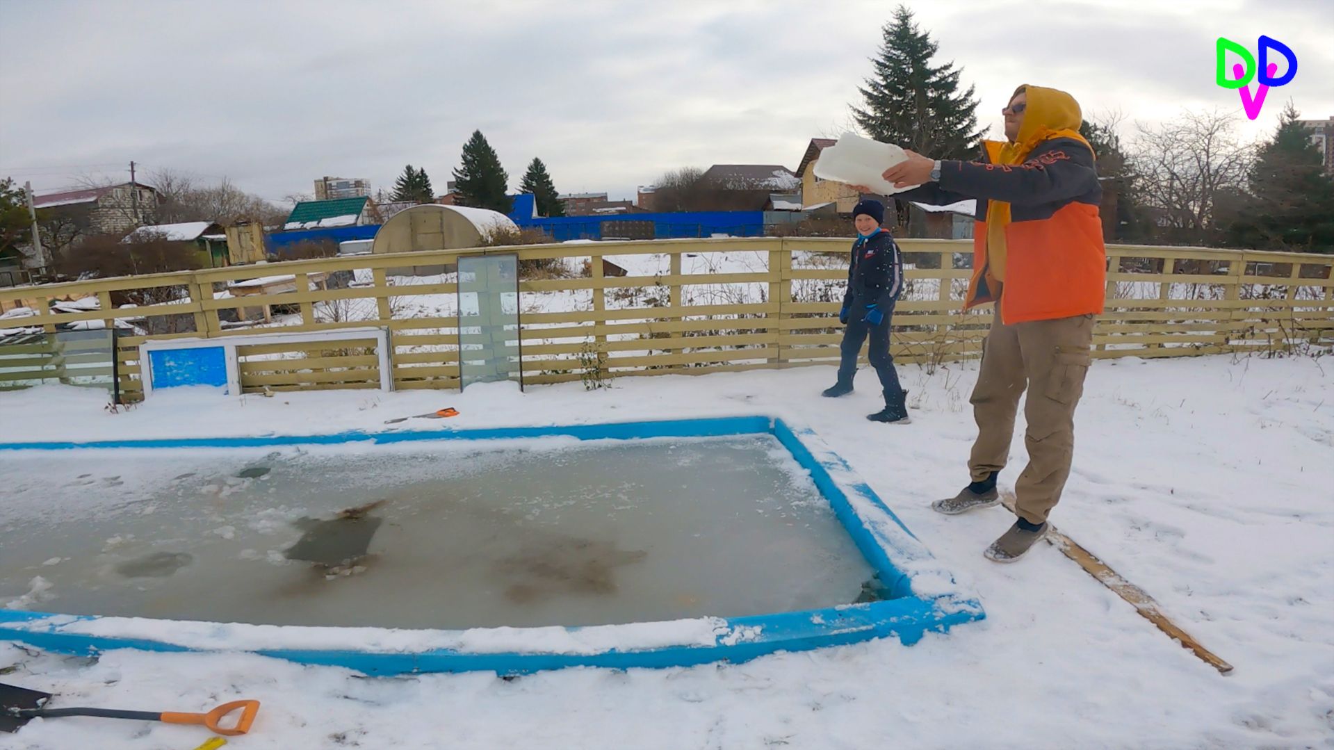 Диана и Даня встречают первый снег на Даче.