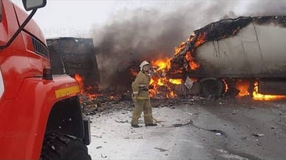 «Сгорел в разорванной кабине». Тройное огненное ДТП с фурами в Новосибирской области.